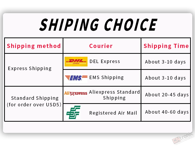 Packages from our warehouse in China will be shipped by ePacket or EMS depending on the weight and size of the product. Packages shipped from our US warehouse are shipped through USPS.