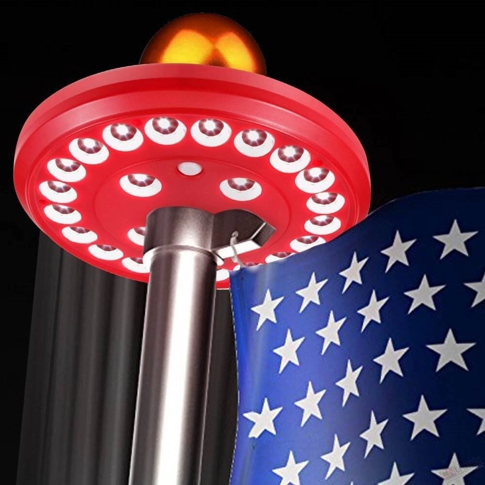 Nighttime lighting of flagpoles can be a challenge. Ground-based lighting requires high power and is subject to vandalism. LEDs lighting from above can do the job but need power at the top of the flagpole
