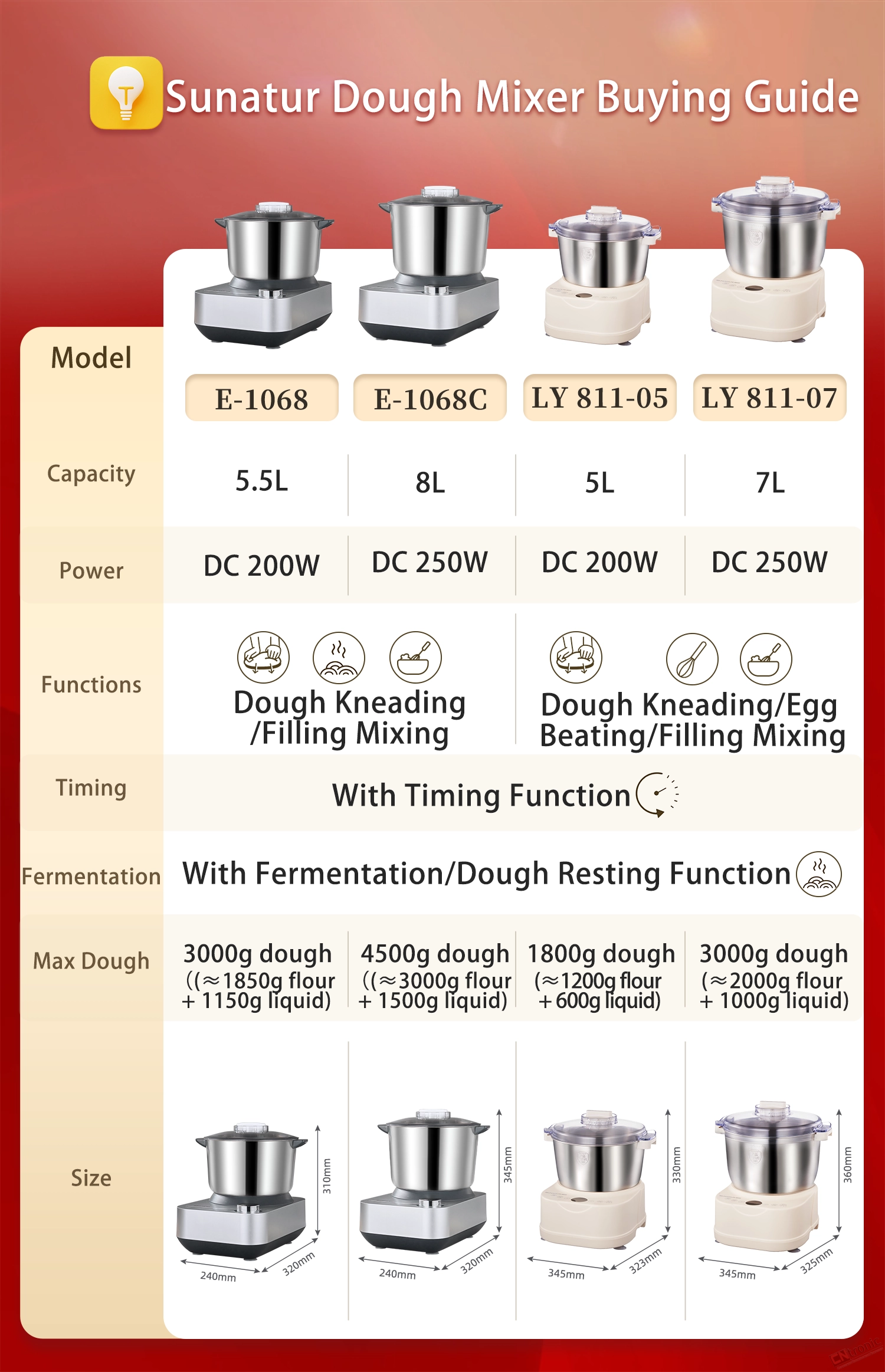 250W DC motor, strong power, more powerful for kneading dough