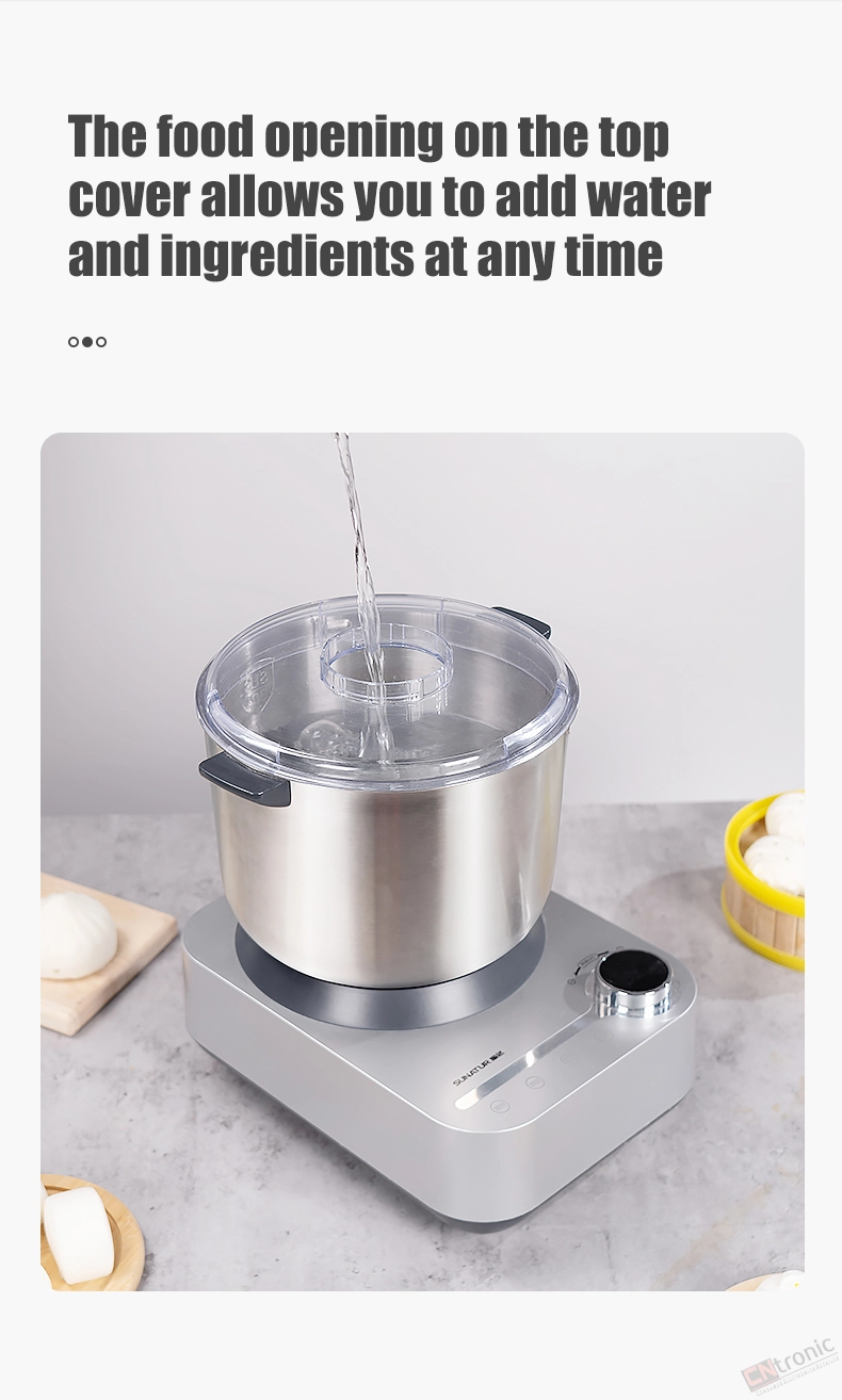 The food opening on the top cover allows you to add water and ingredients at any time.