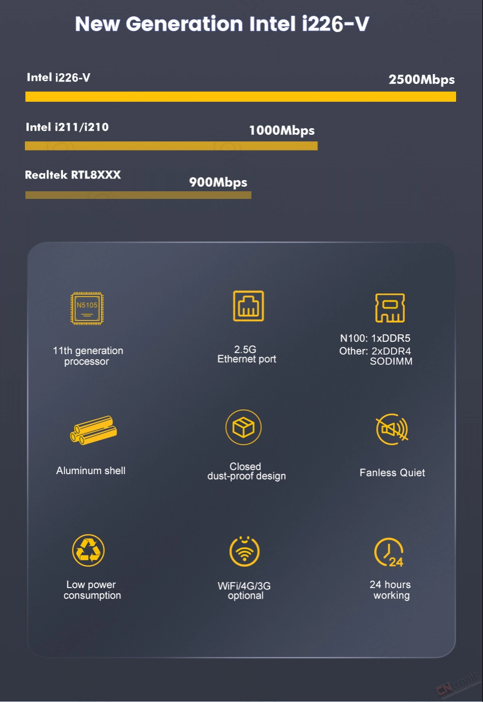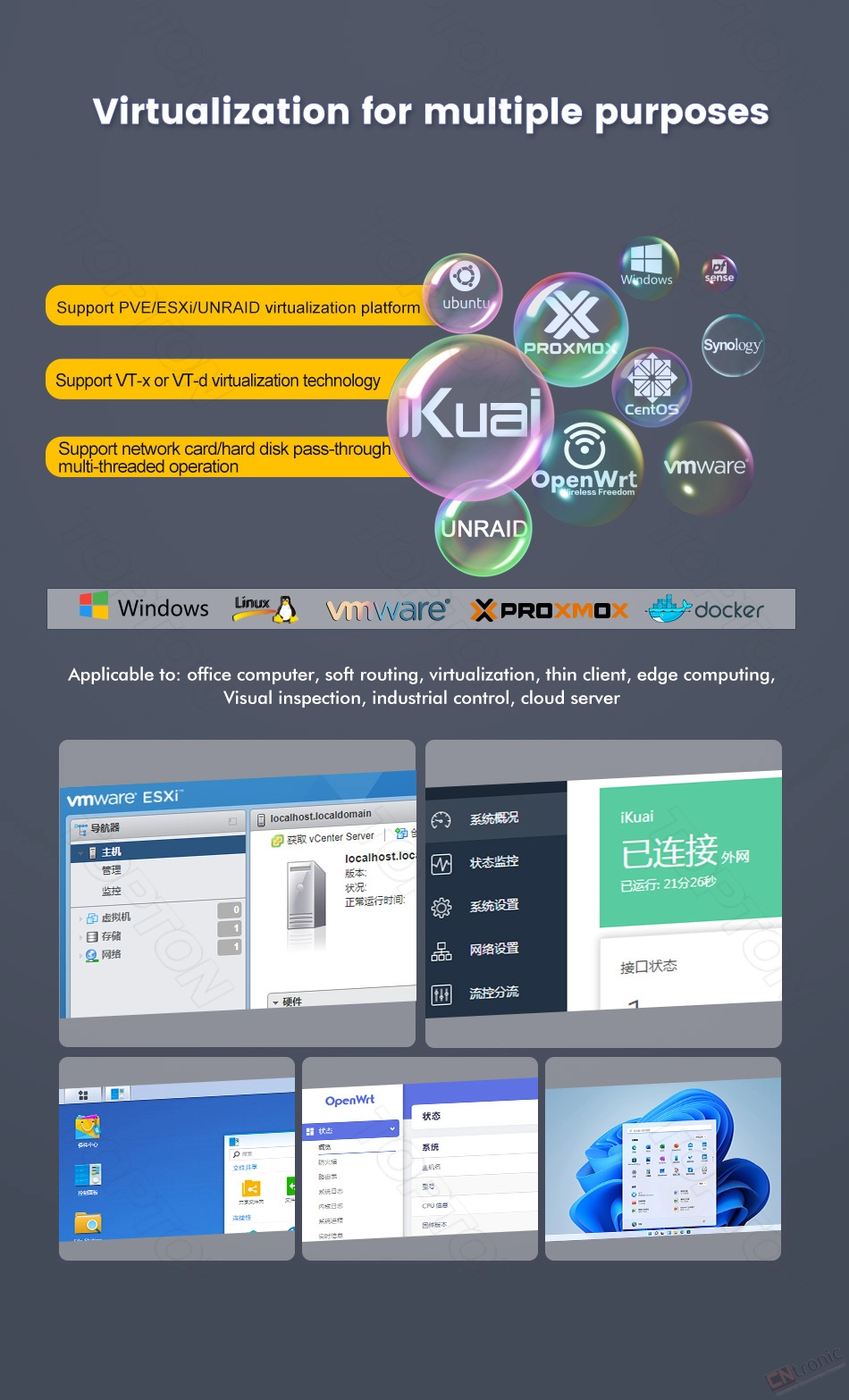 -Support AES-NI, Watchdog, Auto power on, RTC, PXE boot, Wake-on-LAN etc function.